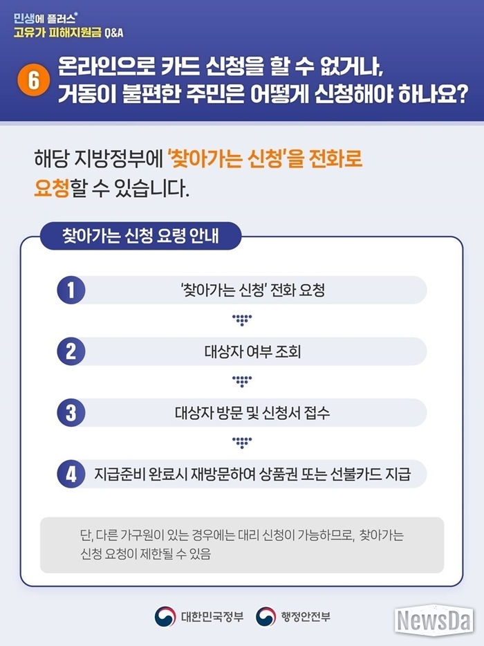 ⑥ 온라인으로 카드 신청을 할 수 없거나, 거동이 불편한 주민은 어떻게 신청해야 하나요?