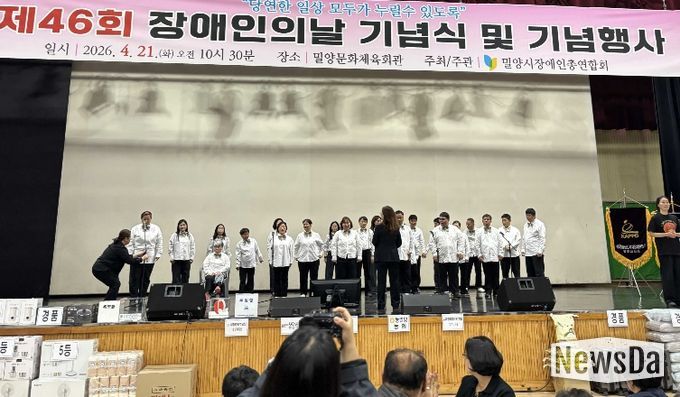 뉴스다 최광묵 기자 | 밀양문화관광재단은 21일 밀양문화체육회관에서 열린 ‘제46회 장애인의 날 기념식’에서 발달장애인 합창단 ‘이루다 합창단’의 올해 첫 공연을 선보였다고 밝혔다.