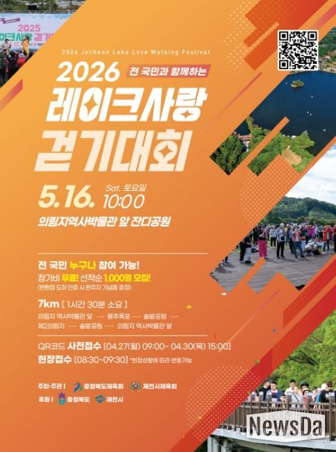 뉴스다 최광묵 기자 | 제천시체육회는 오는 5월 16일 의림지 일원에서 '2026 레이크사랑 걷기대회'를 개최한다고 밝혔다.