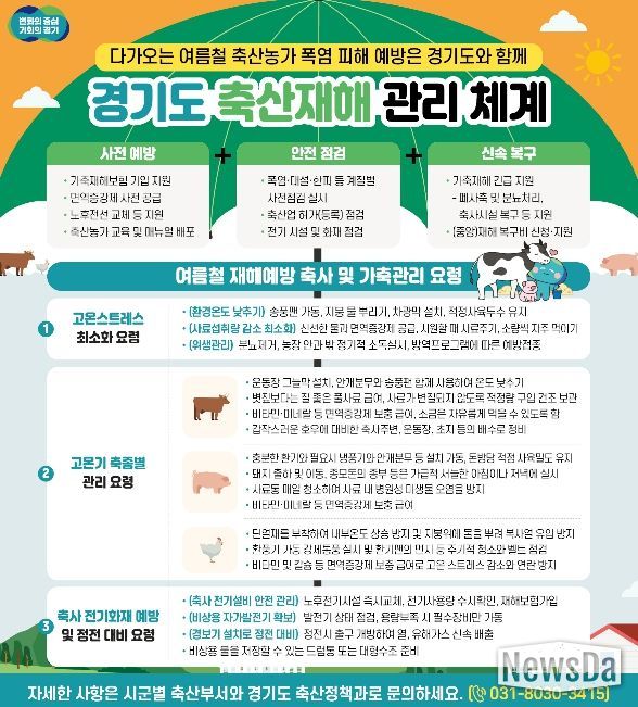 뉴스다 최광묵 기자 | 경기도가 올여름 무더위로부터 축산농가를 보호하기 위해 예산 지원과 현장점검을 아우르는 전방위적 대응에 나섰다.