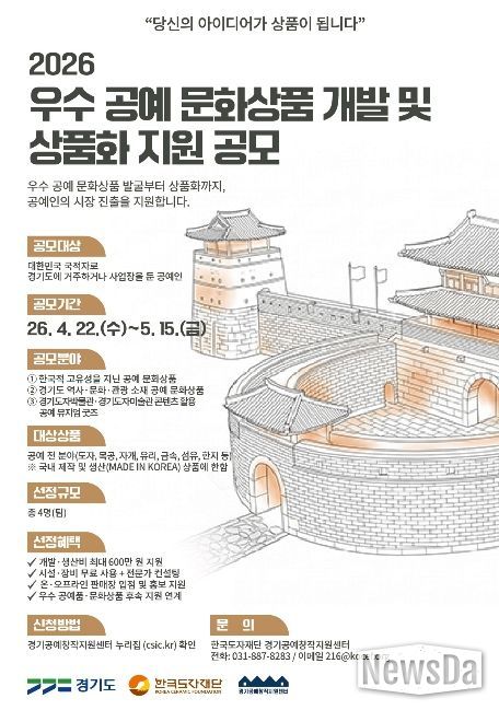 뉴스다 최광묵 기자 | 한국도자재단이 ‘2026 공예 문화상품 개발 및 상품화 지원 사업’을 본격 추진한다고 22일 밝혔다.