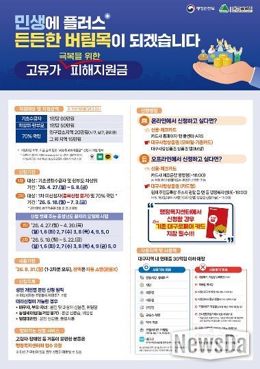 뉴스다 최광묵 기자 | 대구광역시는 지난 4월 11일 정부의 고유가 피해지원금 지급계획이 확정됨에 따라, 4월 27일부터 5월 8일까지 기초생활수급자와 차상위·한부모가정에 우선적으로 1차 신청 접수를 시작한다.