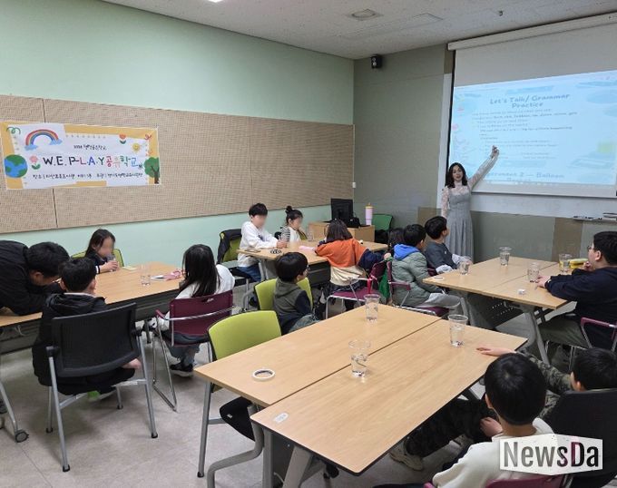 이번 프로그램은 지역 초등학교 3~4학년 학생 16명이 참여한 가운데, 지난 3월 14일부터 4월 18일까지 매주 토요일 총 6회에 걸쳐 지산초록도서관 지하 강의실에서 진행됐다. 학생들은 원어민과 함께하는 한국 전통 놀이, 음식 만들기 및 이국적인 음식 체험, 과학 실험 등 다양한 놀이와 체험을 통해 자연스럽게 영어를 접하며 다른 문화를 이해하고 언어와 비언어적 요소를 경험하는 시간을 가졌다.