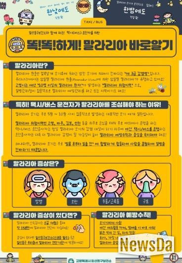 뉴스다 최광묵 기자 | 고양특례시 일산동구보건소는 말라리아 매개모기가 본격적으로 활동하는 시기를 대비해 택시와 버스 등 운전 종사자들을 대상으로 “똑!똑!하!게! 말라리아 바로알기”를 오는 5월부터 홍보할 예정이라고 밝혔다.