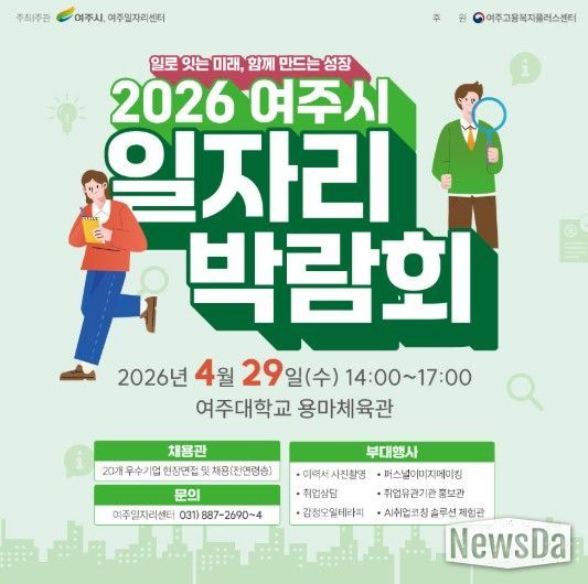 뉴스다 최광묵 기자 | 여주시는 오는 4월 29일 오후 2시부터 5시까지 여주대학교 용마체육관에서 2026 여주시 일자리박람회를 개최한다고 밝혔다.