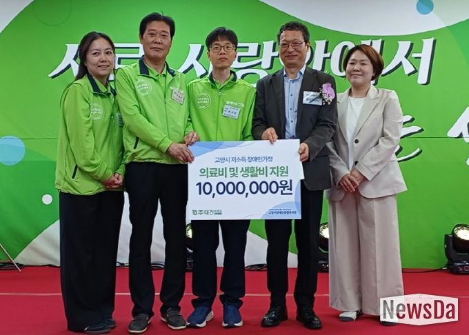 뉴스다 최광묵 기자 | 고양시장애인종합복지관은 지난 18일, ㈜태건비에프가 제37주년 창립기념일과 제46회 장애인의 날을 맞아 후원금 1,000만 원을 전달했다고 22일 밝혔다.