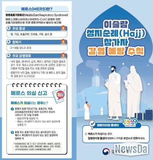 시는 성지순례 기간을 앞두고 사우디아라비아 방문객 증가가 예상됨에 따라 메르스(MERS)와 수막구균 감염증 등 감염병 예방을 위한 개인위생 관리에 각별한 주의가 필요하다고 22일 밝혔다.