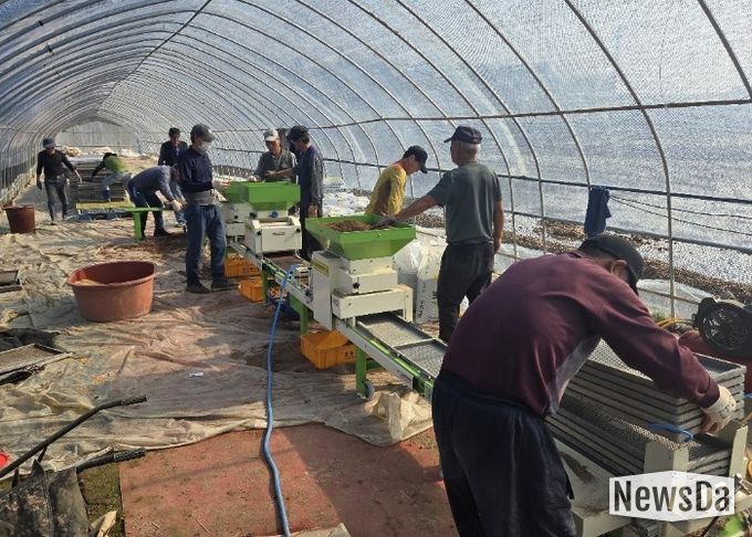 이번 기금사업을 통해 지원받은 육묘 파종기는 모판 투입기부터 모판 적재 이송기까지 장착되어 파종작업의 전 과정을 일괄 자동화로 추진할 수 있어 기존 파종작업의 필수 인력을 9명에서 6명으로 줄일 수 있는 노동력 절감 효과가 있었으며, 기존 육묘 작업량이 시간당 600장 내외였던 것에 반해 모판 작업량을 자유롭게 조절할 수 있어 시간당 800~1200장까지 작업이 가능해지는 등 작업의 효율성도 극대화할 수 있어 참여 회원들의 만족도가 높았다.