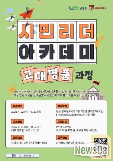 뉴스다 최광묵 기자 | 남양주시는 시민의 자치 역량 강화를 위해 ‘남양주시 시민리더 아카데미’ 제20기 수강생을 모집한다고 22일 밝혔다.