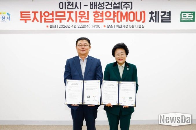 뉴스다 최광묵 기자 | 이천시가 22일 배성건설㈜와 203억 원 규모의 투자업무지원협약을 체결하고, 기업의 신규 공장 신설을 본격 지원한다.