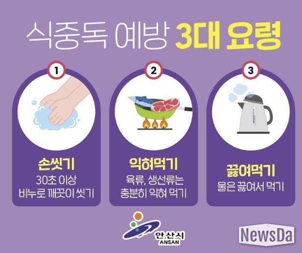 뉴스다 최광묵 기자 | 안산시는 최근 기온 상승으로 식중독 발생 위험이 커짐에 따라 시민들의 안전한 식생활을 위해 봄철 식중독 예방 수칙 홍보에 나섰다고 23일밝혔다.