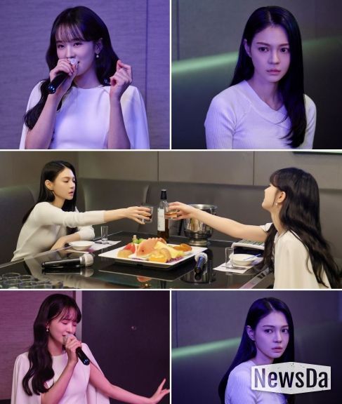 이런 가운데 백서라와 주세빈이 오는 25일(토) 방송될 13회에서 심상치 않은 서늘한 기류를 조성하는 ‘가라오케 독대’로 불길함을 자아낸다. 극 중 모모(김진주 뇌)와 금바라가 가라오케에서 만난 장면. 모모(김진주 뇌)는 갑자기 무대로 나서고, 댄스 동작까지 가미해 노래를 열창한다. 그때 노래를 듣던 금바라가 누군가를 떠올리며 얼음처럼 굳어버리는 것. 금바라가 소름 돋는 표정을 지은 이유는 무엇일지, 노래 삼매경에 빠진 모모(김진주 뇌)의 의도가 궁금증을 높인다.