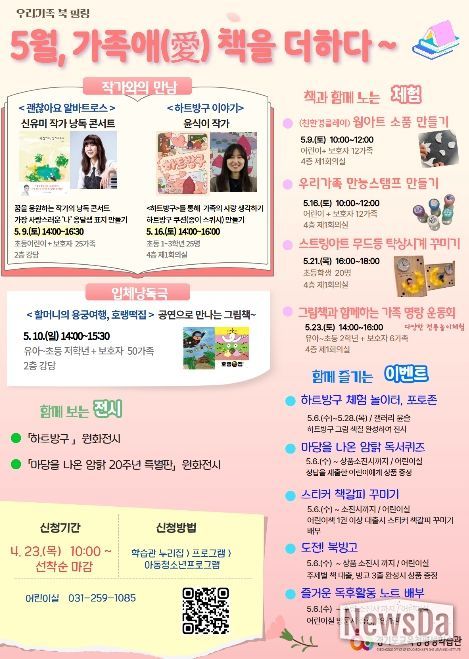 뉴스다 최광묵 기자 | 경기도교육청평생학습관이 가족 사랑 실천과 가족 간 유대감 증진을 위해 가족 독서체험 행사인 䃵월, 가족애(愛) 책을 더하다’를 운영한다.