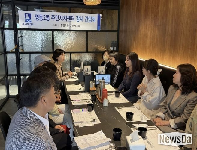 뉴스다 최광묵 기자 | 수원시 영통구 영통2동은 지난 22일 영통2동 주민자치회가 주민자치센터 프로그램 운영과 관련한 다양한 의견을 수렴하고, 보다 내실 있는 운영과 활성화 방안을 모색하기 위해 주민자치센터 프로그램 강사진과의 간담회를 개최했다고 밝혔다.