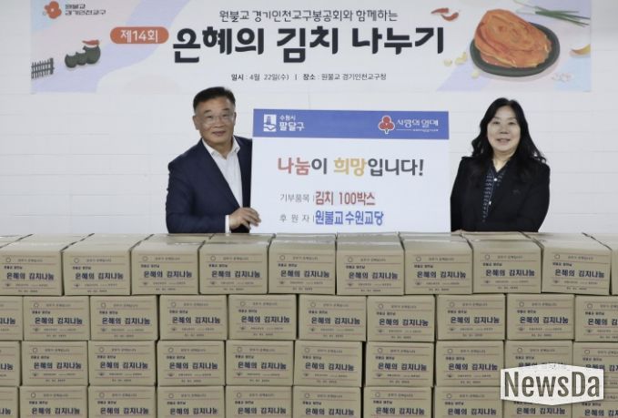 뉴스다 최광묵 기자 | 수원시 팔달구은 원불교 수원교당으로부터 지난 22일, 김치 100박스를 기부받았다고 밝혔다.