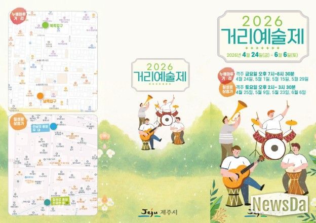 뉴스다 최광묵 기자 | 제주시는 4월 24일부터 6월 6일까지 연동 누웨마루거리와 칠성로 상점가에서 ‘2026 상반기 거리예술제’를 개최한다.