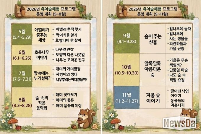 아울러 시는 올해 평일 단체 프로그램 외에도 가족 단위 시민이 참여할 수 있는 주말 프로그램을 새롭게 개설해 시범 운영할 예정이다. 이를 통해 아이들이 부모와 함께 숲에서 자연을 체험할 수 있는 기회를 확대해 나갈 계획이다.