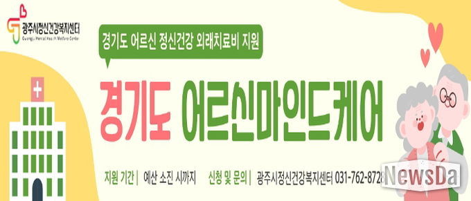 뉴스다 최광묵 기자 | 광주시정신건강복지센터는 지역 내 어르신의 정신건강 증진과 치료 접근성 강화를 위해 ‘2026년 어르신 마인드 케어 치료비 지원 사업’을 추진 중이라고 23일 밝혔다.