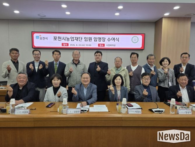 뉴스다 최광묵 기자 | 재단법인 포천시농업재단은 4월 22일 공개모집 절차를 통해 선발된 비상임 이사 및 감사 13명을 대상으로 임명장 수여식 개최하고 2028년까지 운영되는 제3대 이사회 출범을 알렸다.