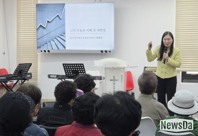 뉴스다 최광묵 기자 | 동두천시정신건강복지센터는 지난 22일 동두천성결교회에서 어르신 40여 명을 대상으로 성인 정신건강교육 ‘노인 우울증 이해 및 예방법’을 실시했다.