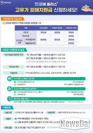 뉴스다 최광묵 기자 | 김포시가 최근 중동 전쟁 등 대외 경제 불확실성으로 급등한 유가와 물가로 고통받는 시민들을 위해 ‘고유가 피해지원금’ 지급을 시작한다고 밝혔다. 신속한 지원을 위해 기초수급자·차상위계층·한부모가족을 1차로 우선 지급하고 건보료 등을 통해 대상 확정 후 김포시민 70%에게 2차 지급한다.