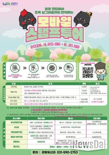 뉴스다 최광묵 기자 | 남양주시는 역사·힐링·건강·체험을 결합한 ‘2026년 상반기 모바일 스탬프투어’를 오는 6월 21일까지 운영한다고 23일 밝혔다.