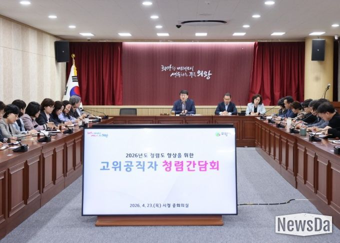 뉴스다 최광묵 기자 | 의왕시가 4월 23일 시청 중회의실에서 고위공직자를 대상으로 청렴간담회를 개최하고, 청렴도 향상을 위한 정책 추진 기반 마련에 나섰다.