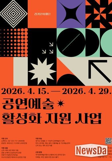 뉴스다 최광묵 기자 | 경기문화재단은 경기도 내 유망 공연예술인과 단체의 창작 활동 및 작품 발표 기회 확대를 위해 '2026 공연예술 활성화' 공모를 시행한다.