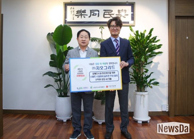 뉴스다 최광묵 기자 | 남양주시는 23일 ㈜지오그리드가 취약계층 생활환경 개선을 위해 관내 장애인복지시설 신망애재활원에 1억 원 상당의 스마트 수질 관리 및 정수 시스템 ‘BLOS’를 지원했다고 밝혔다.