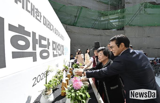 뉴스다 최광묵 기자 | 남원시가 23일, 지역 교육의 거점이 될 남원 인재학당 ‘만인재’의 상량식(上樑式)을 거행하며 2027년 개원을 위한 막바지 건립 공사에 속도를 내고 있다.