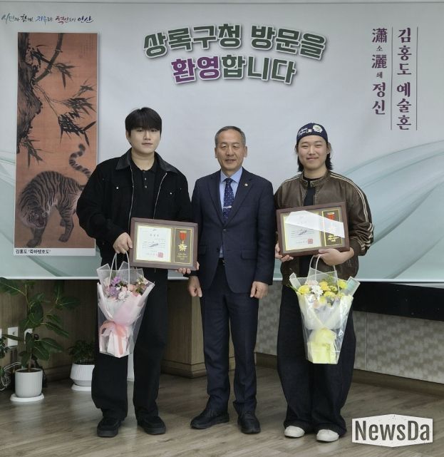 뉴스다 최광묵 기자 | 안산시 상록구는 지난 23일 구청장실에서 성안고 사거리 종이 유출 사고 현장에서 자발적으로 수거 활동에 나선 한양대학교 ERICA 캠퍼스 학생 2명에게 ‘모범시민 표창’을 수여했다고 24일 밝혔다.