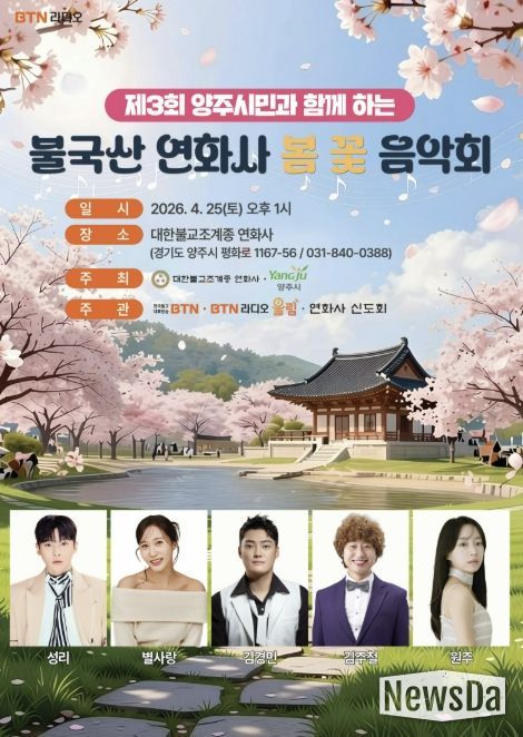 대한불교조계종 연화사와 양주시가 공동 주최하고 BTN불교TV, BTN라디오, 연화사 신도회가 주관하는 이번 음악회는 완연한 봄을 맞아 시민들에게 문화 향유의 기회를 제공하고 일상의 활력을 불어넣기 위해 마련됐다.
