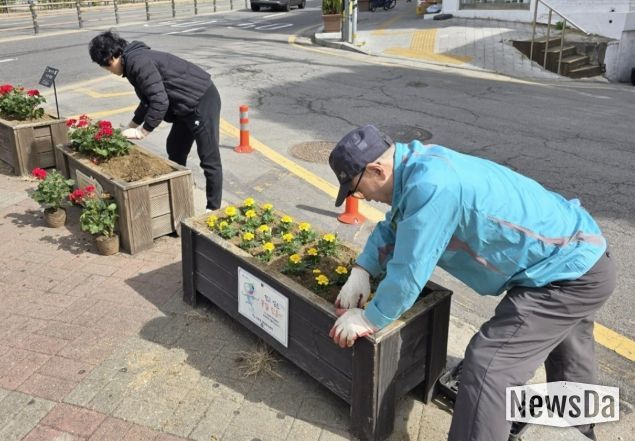 이번 활동은 통장협의회를 중심으로 주민들이 직접 참여하고 주도한 환경정비로, 관내에 설치된 크고 작은 화분 약 40여 개에 다양한 봄꽃을 식재하고 주변 환경을 함께 정비하며 마을 곳곳에 화사한 봄기운을 더했다.