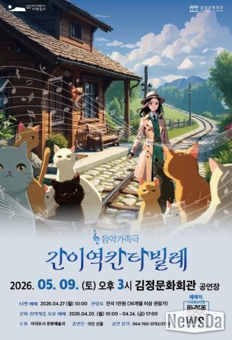 뉴스다 최광묵 기자 | 서귀포시는 가정의 달 5월을 맞아 온 가족이 함께 즐길 수 있는 음악 가족극 '간이역 칸타빌레'를 오는 5월 9일 오후 3시에 김정문화회관에서 개최한다.