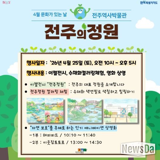뉴스다 최광묵 기자 | 전주역사박물관은 25일 관람객을 위한 4월 ‘문화가 있는 날’ 행사로 ‘전주정원’ 프로그램을 운영했다.