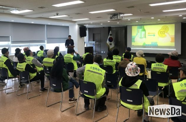 뉴스다 최광묵 기자 | 수원시 장안구는 지난 4월 23일, 장안구청 대회의실에서 자원관리사들을 대상으로 안전 및 직무 교육을 실시했다.