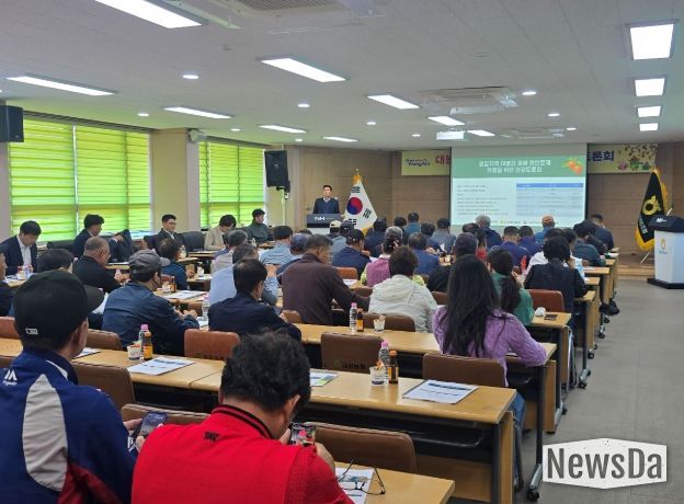 뉴스다 최광묵 기자 | 영암군이 대봉감 결실률 저하 문제 해결을 위해 전남도 및 관련 기관과 함께 현장토론회를 열고 대응 방안을 논의했다.
