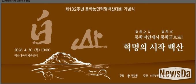 뉴스다 최광묵 기자 | 부안군은 오는 30일 부안 백산성지 및 백산다목적체육센터 일원에서 제132주년 부안 동학농민혁명 백산대회 기념행사를 개최한다고 밝혔다.
