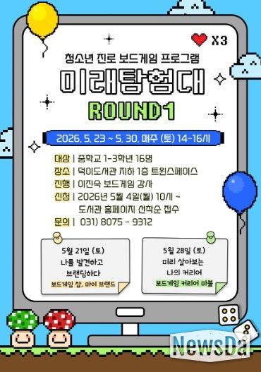 뉴스다 최광묵 기자 | 고양특례시 덕이도서관은 청소년들이 보드게임을 통해 자신의 적성과 흥미를 발견하고 미래 진로를 설계할 수 있도록 돕는 ‘미래탐험대 ROUND1’을 운영한다고 24일 밝혔다.