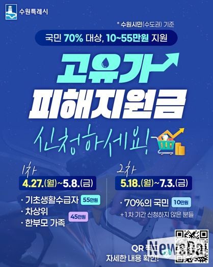 뉴스다 최광묵 기자 | 수원특례시가 ‘고유가 피해지원금 태스크포스팀’을 운영해 시민들이 지원금을 원활하게 신청할 수 있도록 지원한다. 1차 태스크포스팀은 4월 20일부터 5월 8일까지, 2차는 5월 11일부터 7월 31일까지 운영한다.