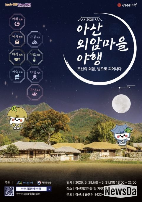 뉴스다 최광묵 기자 | 아산시의 대표적인 야간 문화유산 축제인 ‘2026년 아산 외암마을 야행’이 오는 5월 29일부터 31일까지 3일간 송악면 외암민속마을과 저잣거리 일원에서 펼쳐진다.
