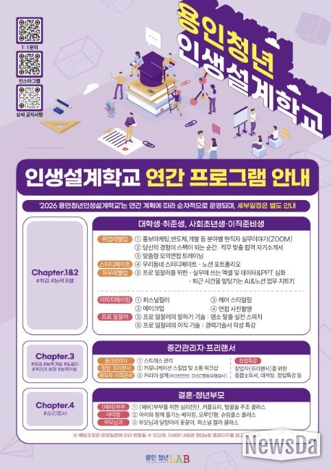 뉴스다 최광묵 기자 | 용인특례시는 오는 5월 4일까지 ‘용인청년 인생설계학교’ 중간관리자 교육 수강생을 모집한다고 27일 밝혔다.