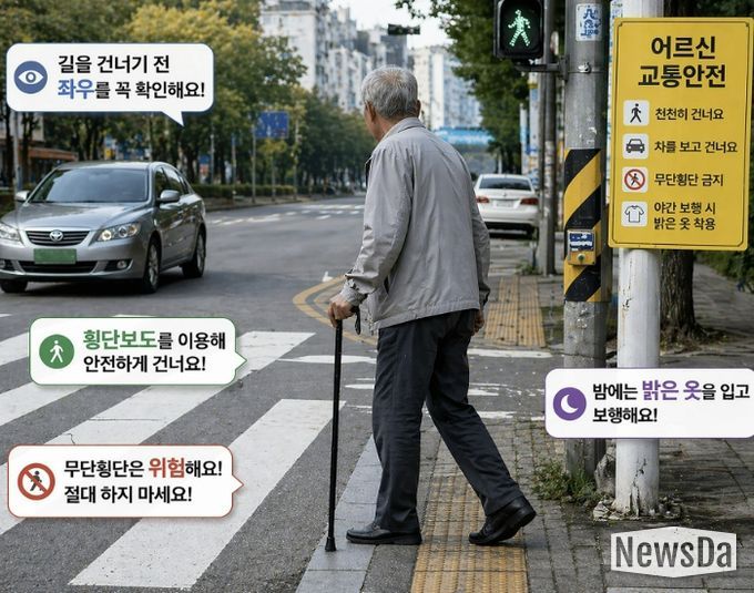 경찰청 교통사고 통계에 따르면 2025년 기준 고령 운전자 교통사고는 45,873건으로 전년 대비 8.3% 증가했으며, 사망자는 843명으로 10.8% 늘어난 것으로 나타났다. 또한 전체 보행자 교통사고 사망자 926명 중 고령 보행자가 619명으로 약 66.8%를 차지해, 보행자 사망의 상당 부분이 고령층에 집중된 것으로 분석됐다.