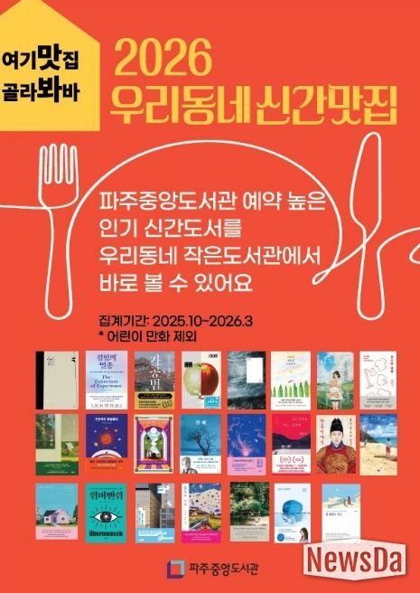 뉴스다 최광묵 기자 | 파주시 중앙도서관은 지역 내 작은도서관 활성화를 위해 2024년부터 추진해 온 '우리동네 신간맛집' 사업을 지난 23일부터 관내 13개 작은도서관과 함께 본격 운영하고 있다.
