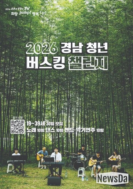 뉴스다 최광묵 기자 | 경상남도는 청년 버스킹 문화 활성화와 청년 문화 향유기회 확대를 위한 ‘2026 경남 청년 버스킹 챌린지’ 참가자를 5월 19일까지 모집한다고 밝혔다.