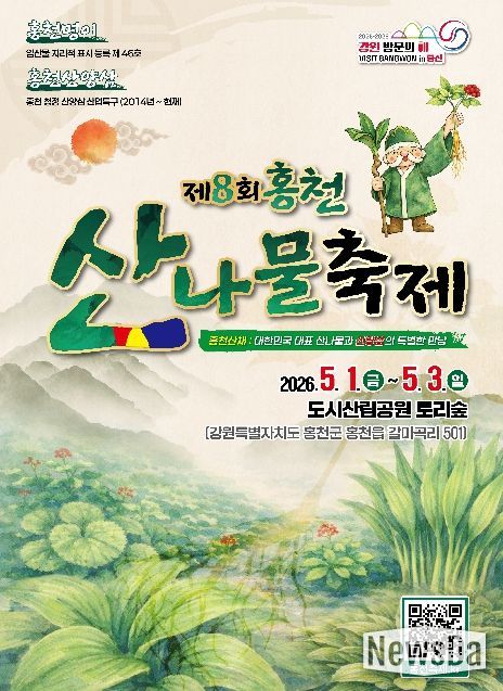 제8회 홍천 산나물 축제는 오는 5월 1일부터 3일까지 3일간 도시 산림공원 토리 숲에서 열린다.