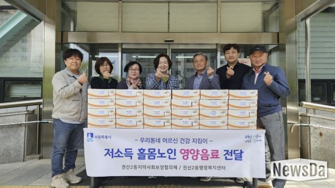 뉴스다 최광묵 기자 | 수원시 권선구 권선2동 지역사회보장협의체는 지난 23일, 저소득 홀몸노인 건강증진과 정서적 안정을 위한 “우리 동네 어르신 건강지킴이 영양음료 전달사업”을 진행했다.