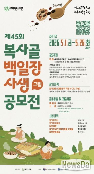 뉴스다 최광묵 기자 | 부천문화원이 설립 60주년을 기념하여 지역 문화의 가치를 시민과 공유하고 향토문화의 지속가능한 기반을 마련하기 위한 ‘제45회 복사골 백일장·사생(그림) 공모전’을 개최한다. 이번 공모전은 지난 60년간 지역 문화의 구심점 역할을 해온 부천문화원의 역사를 되짚어보고, 국민의 참여를 통해 지역 공동체의 유대감을 강화하고자 기획됐다.