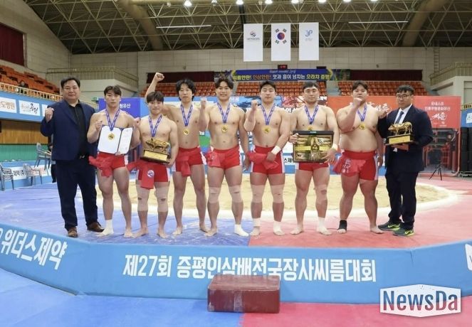 뉴스다 최광묵 기자 | 광주시청 씨름팀이 충북 증평스포츠센터에서 열린 ‘제27회 증평인삼배 전국장사씨름대회’에서 단체전 우승을 차지하고 개인전에서도 다수의 입상자를 배출했다.