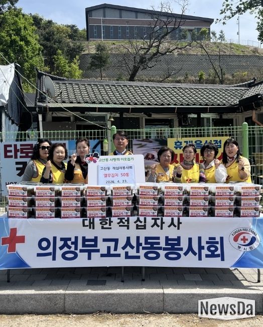 뉴스다 최광묵 기자 | 의정부시 고산동주민센터는 4월 23일 고산동 적십자봉사회(회장 이미애)가 직접 만든 열무김치 50통을 취약계층을 위해 전달했다고 밝혔다.